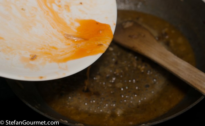 Don’t forget to add the juices that leaked from the fish to the pan with the reducing stock.
