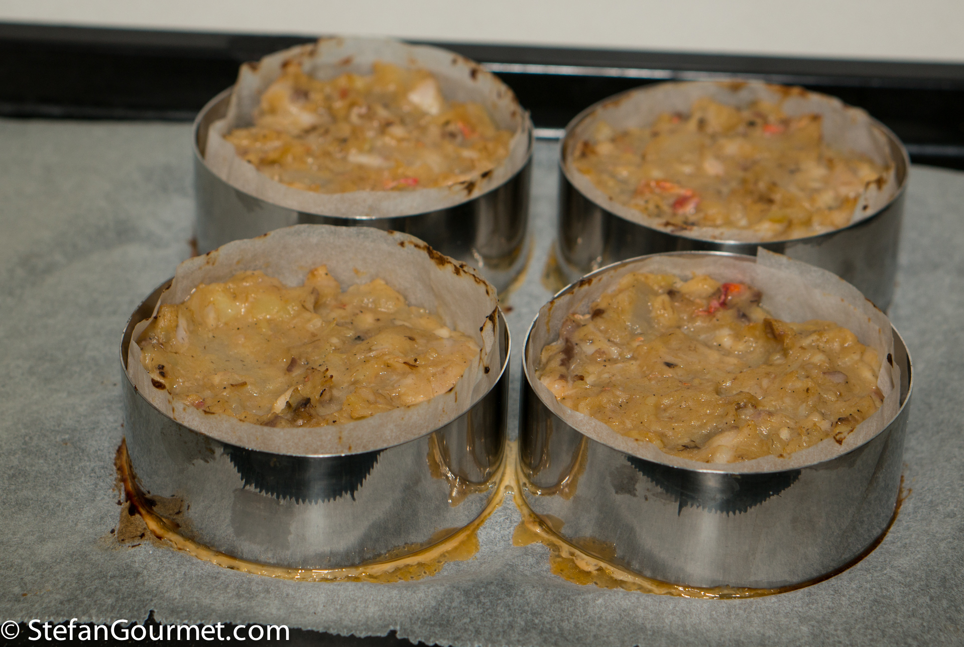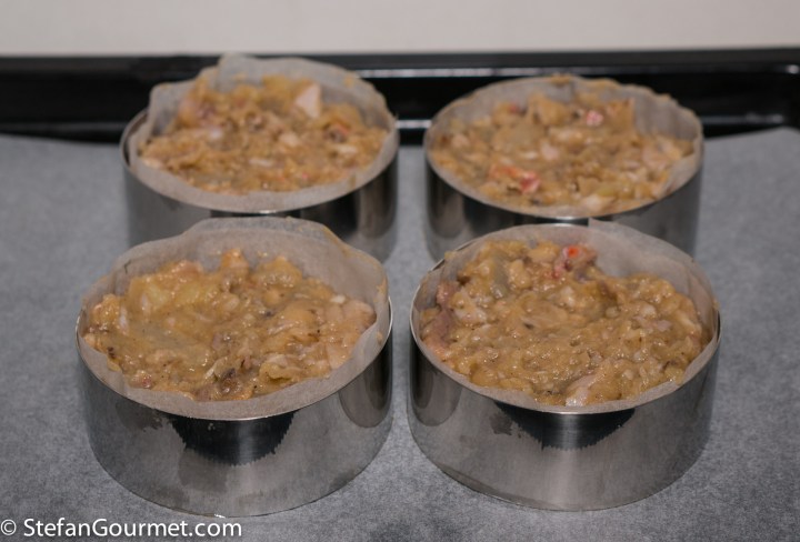 Place the mixture in the ring shapes. Up to this point, everything can be prepared in advance and refrigerated.