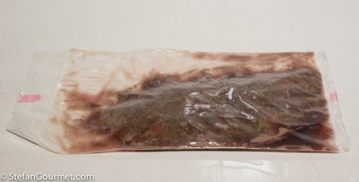 After those three days, the meat had changed color. You could now take it out of the bag and cook it in some conventional way.