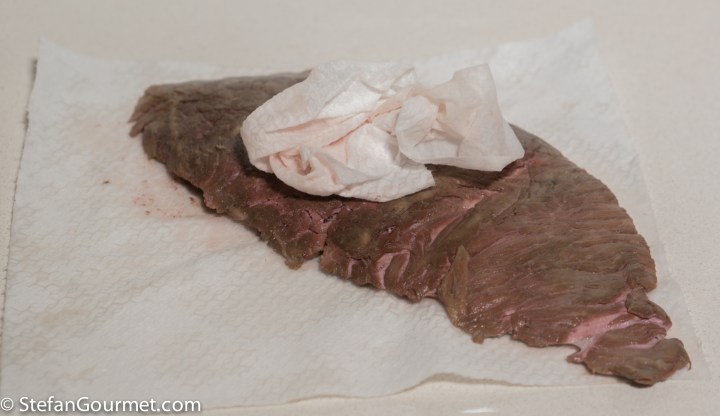 After cooking sous-vide, I took the flank steak out of the bag and patted it dry with paper towels.