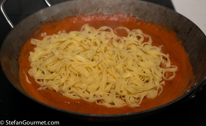 Drain the pasta and add it to sauce.