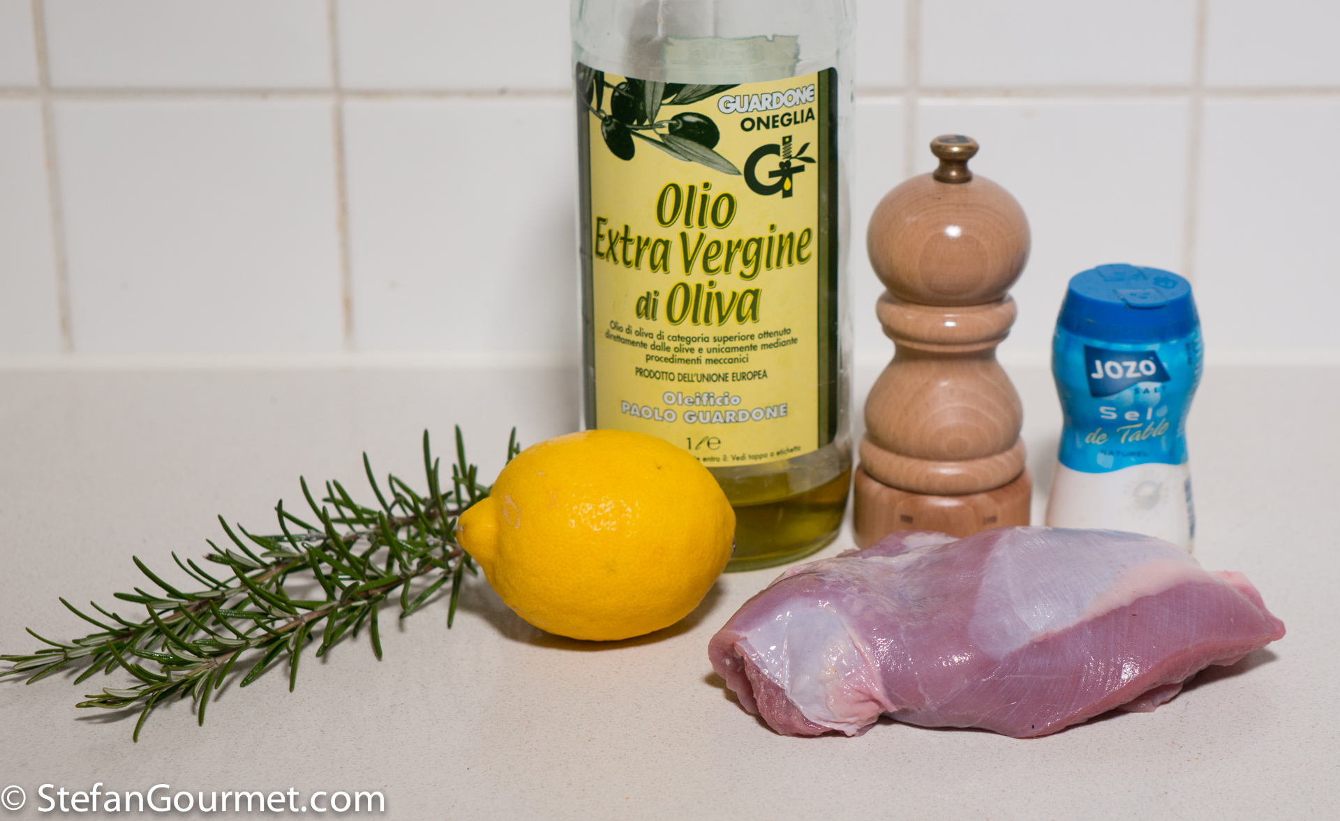 When I saw boneless and skinless turkey thigh at my poultry guy at the market, I wanted to give it a try and of course I wanted to prepare it sous-vide. The combination with lemon and rosemary was inspired by Italian recipes. Since I wanted the turkey to be tender and juicy, I decided to cook it sous-vide for 24 hours at 62C/144F. The result was very good. You could apply the same time and temperature for a whole leg or a drumstick. Here is what I did…
