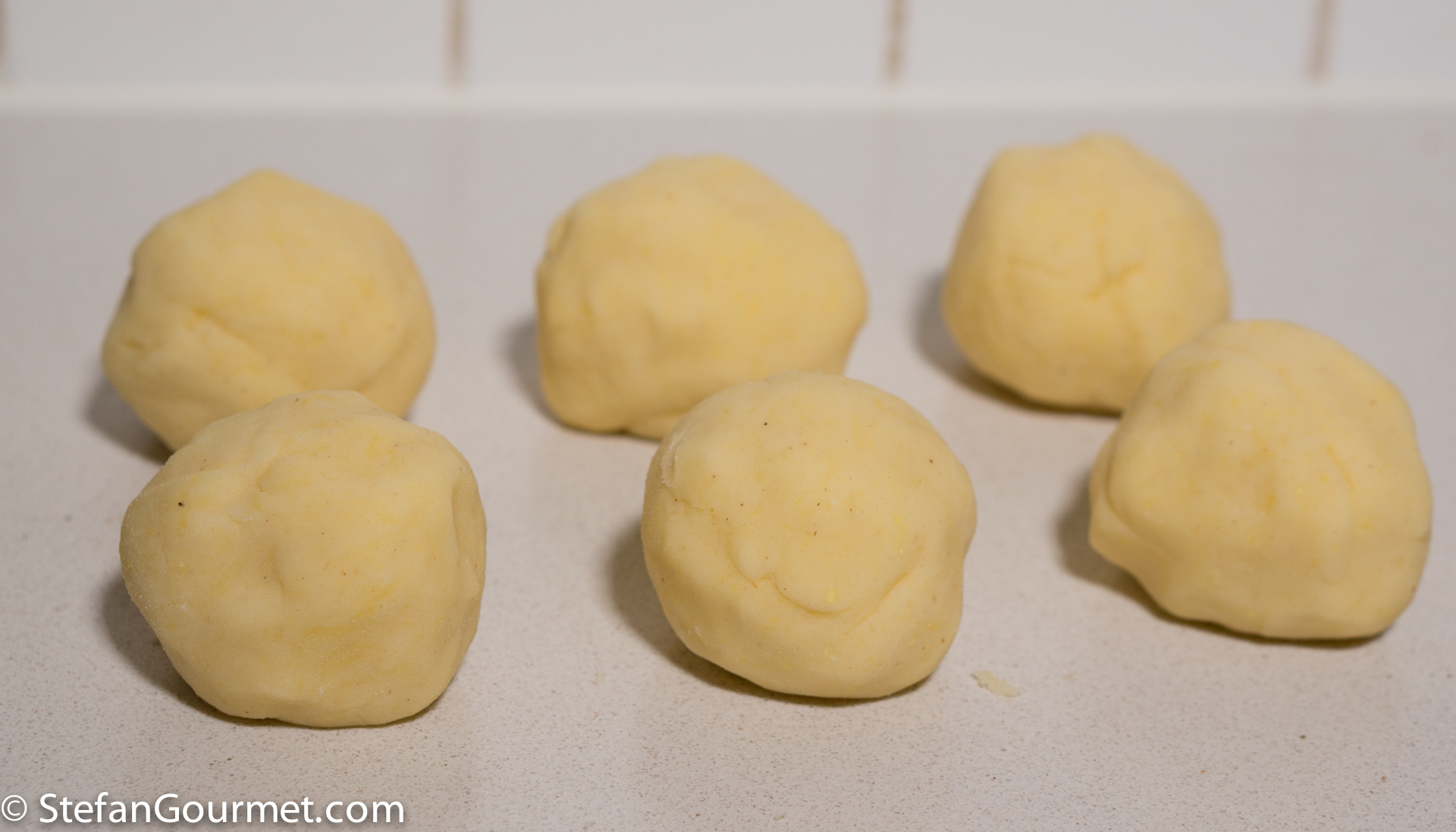 Now shape into 6 to 8 balls using your hands. This is easier if your hands are either moist or dusted with flour.
