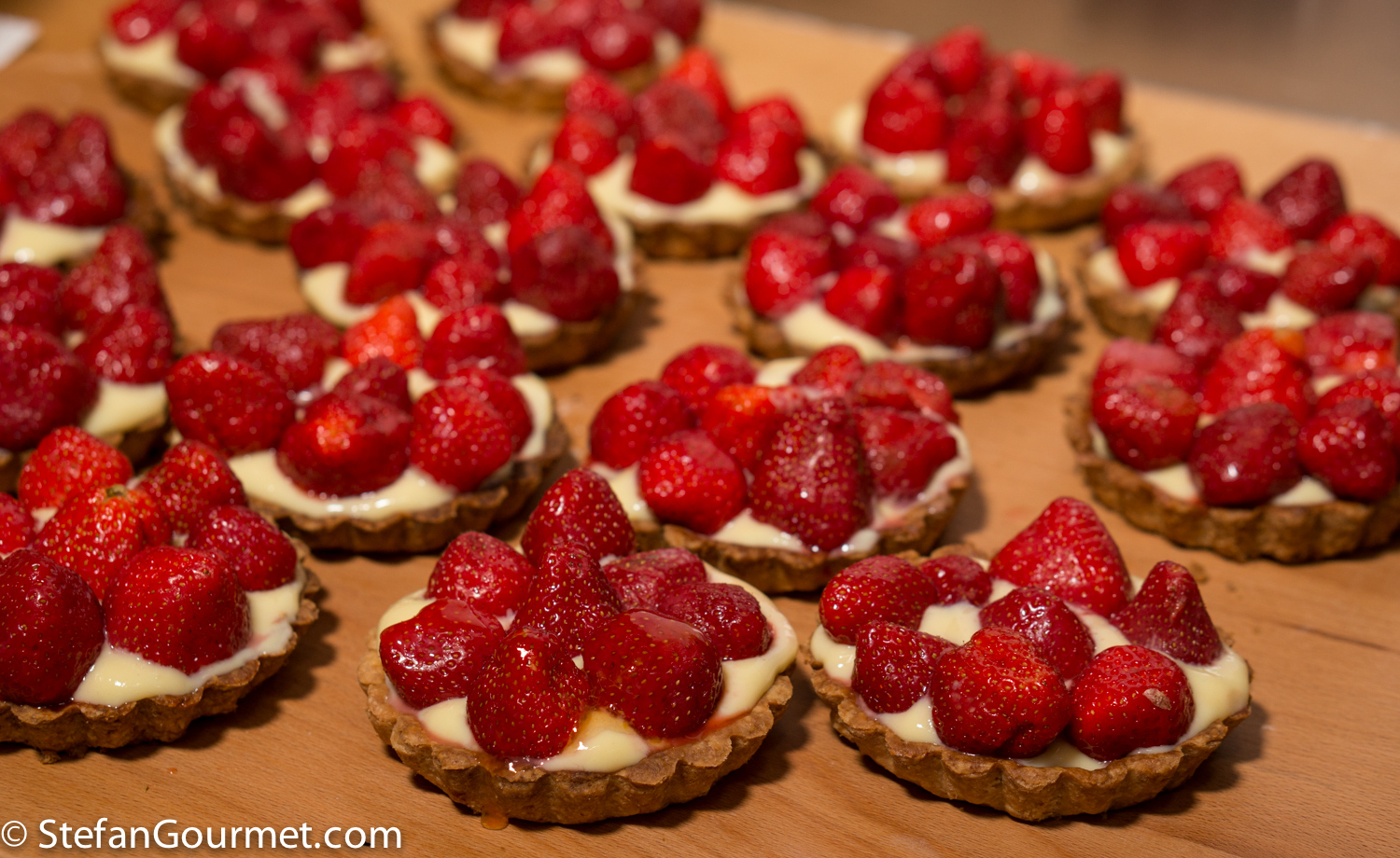 These strawberry tartlets (strawberries with pastry cream on a sweet shortcrust pastry crust) are a classic. You could make a large tart, but it looks much better and is easier to serve when you make individual tartlets.