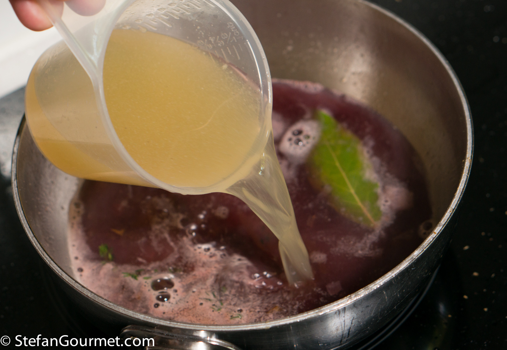 Reduce the stock over medium heat to about 250 ml (1 cup).