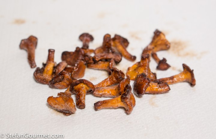 Allow the chantarelles to drain on paper towels. Season with salt.