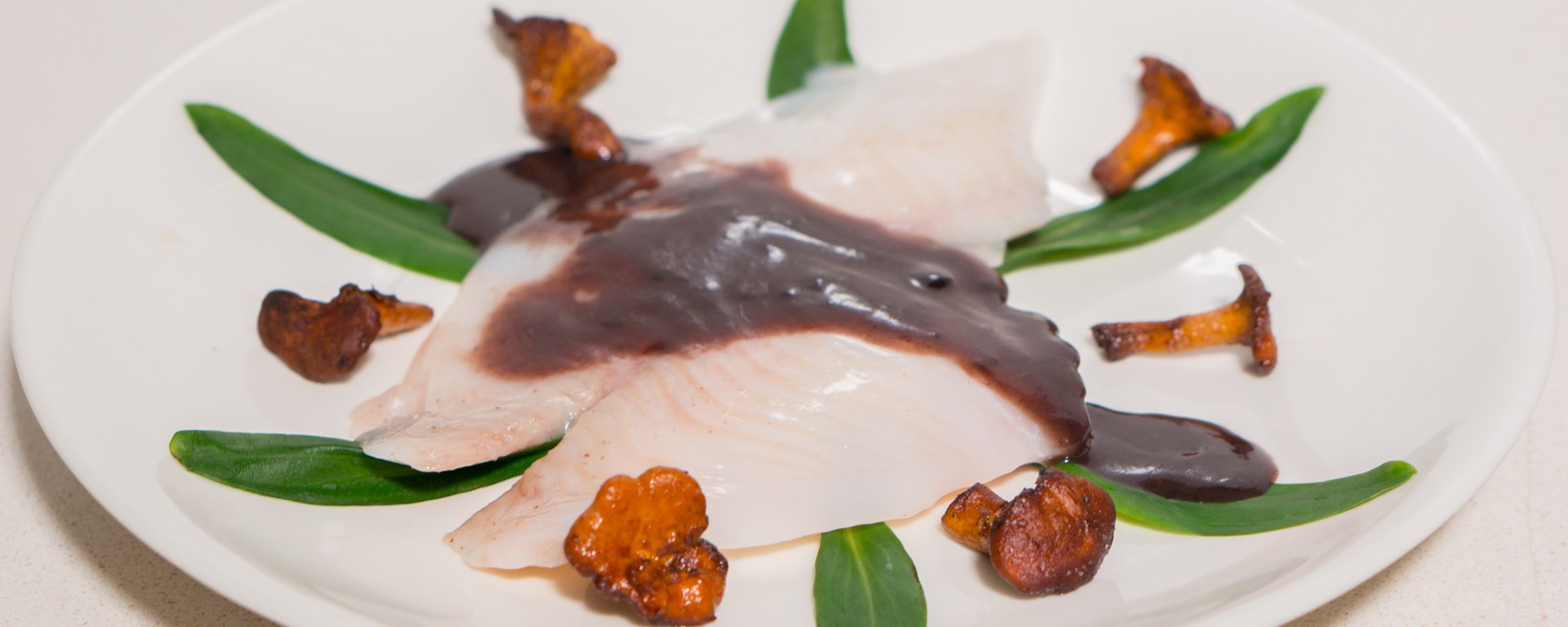 While the sauce is reducing and the turbot is in the sous-vide, sauté the chanterelle mushrooms in the remaining tablespoon of butter…