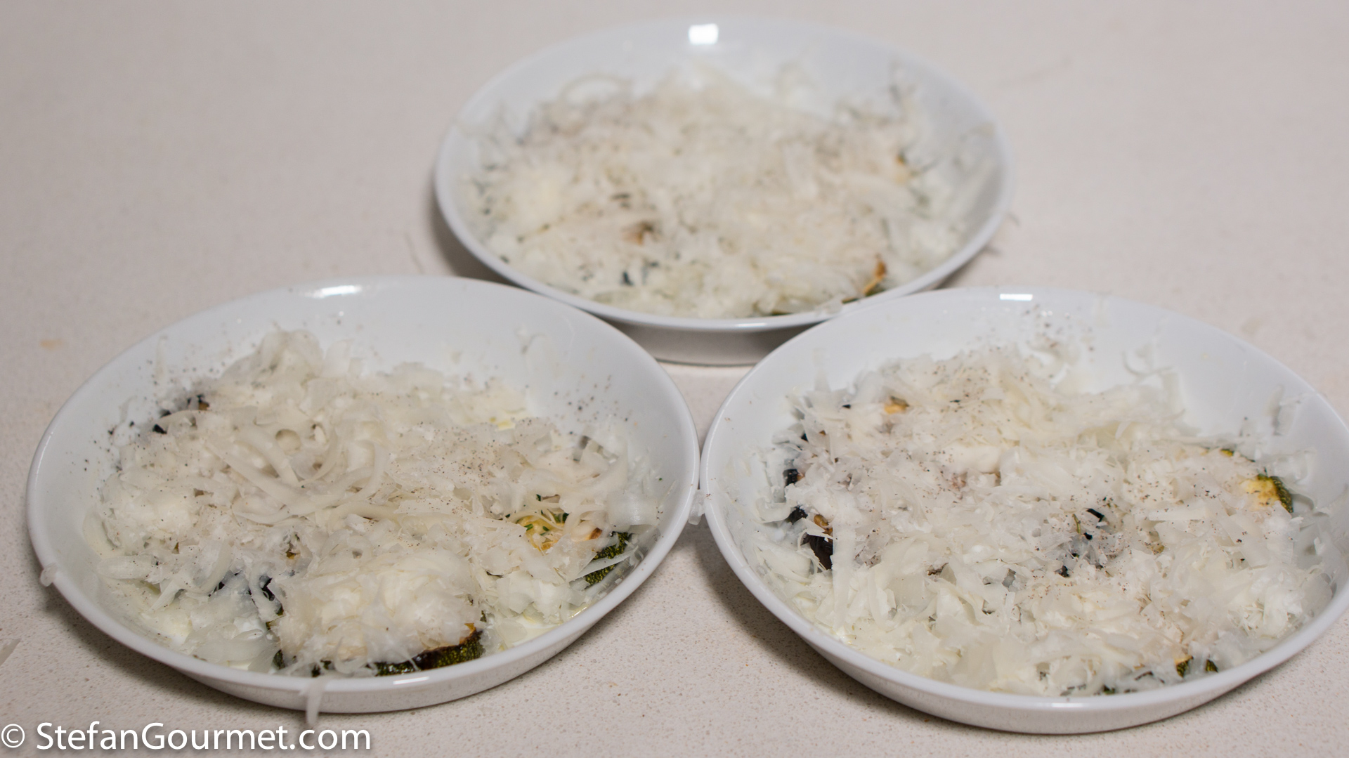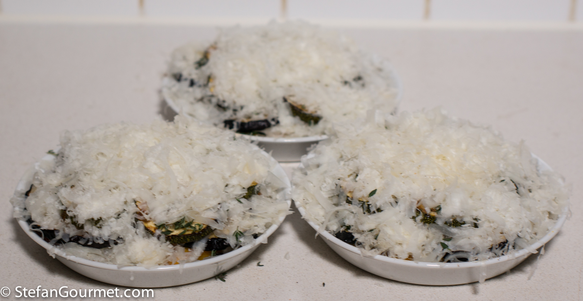 A very fine looking mix of good veggies and cheese. I’ll look forward to trying this. I’ll be using grated Manchego, as that’s what’s in the fridge. A bit of Italian Spanish fusion. Great straight up recipe, I like that.