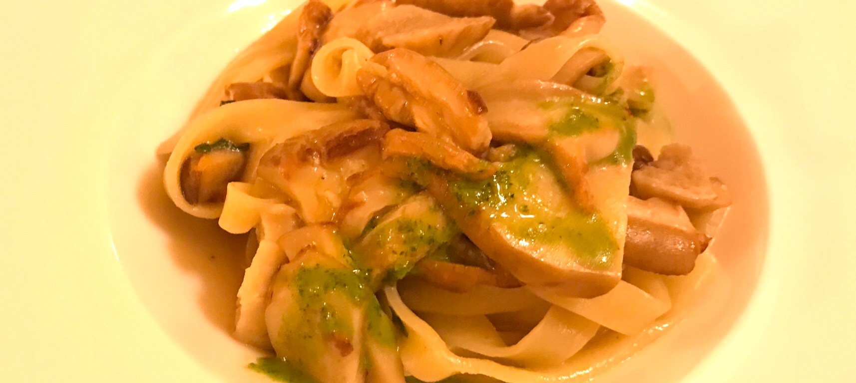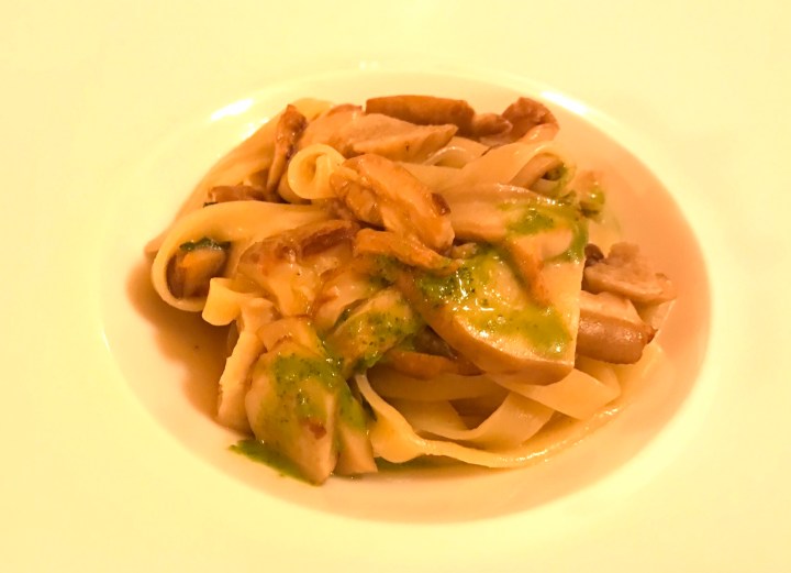 These were hands down the best tagliatelle ai funghi porcini I’ve ever had. The secret seems to be the 1:1 ratio of mushrooms to pasta. But also the freshness of the porcini and they were cooked just right, and the fresh pasta, which is made from semolina flour (rather than 00) and with less eggs and a bit of water. There was only a hint of parsley (“aria di prezzemolo”) and of course no parmigiano (which would have obliterated the elegant porcini flavor).
