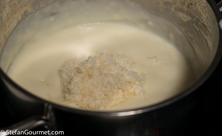 In the meantime, make a white sauce using the butter, flour, and milk as described here. The white sauce should be thinner than usual. Stir in the grated cheese in three additions over low heat…