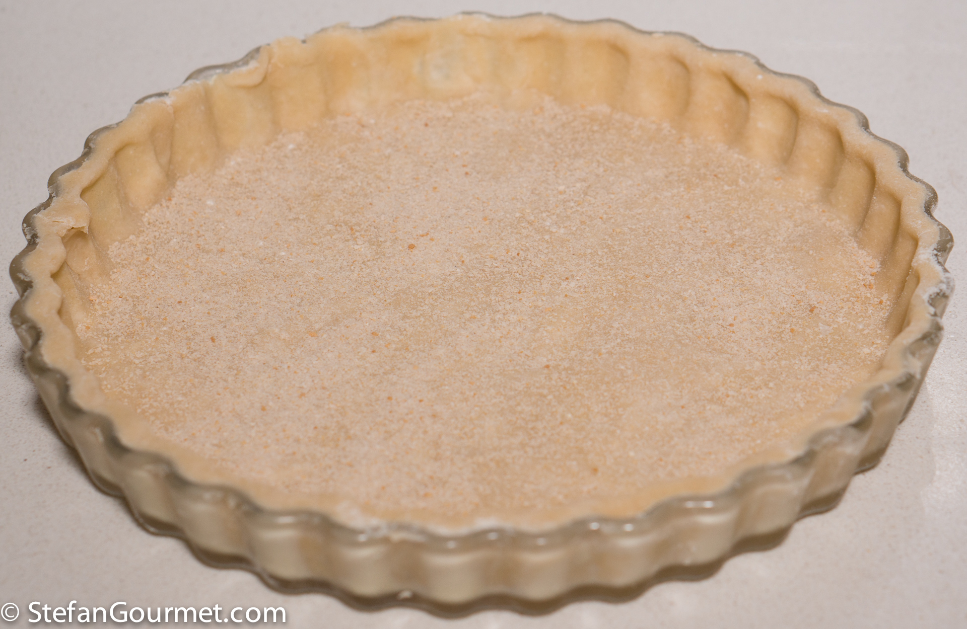 …and sprinkle with an even layer of dried breadcrumbs. This will help to keep to prevent a soggy bottom.