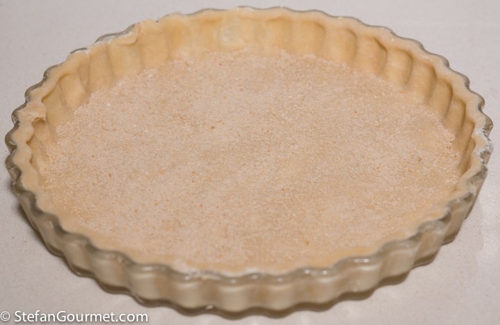 Make the extra flaky pie crust dough using this method, but using the proportions given above. Wrap the dough in plastic and allow to rest for at least half an hour in the refrigerator.