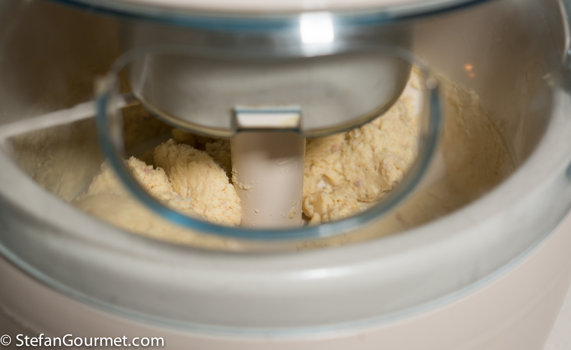 Then I put it my little ice machine, which is a refrigerated bowl with a rotating blade.