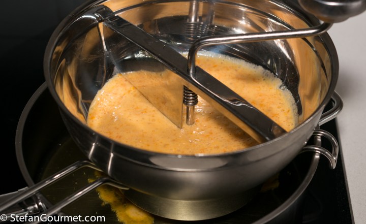 Now add the flour, and mix with the paddle attachment until it comes together. You may need to add some water or flour; click here for a full explanation of how to make pasta dough with a stand mixer.