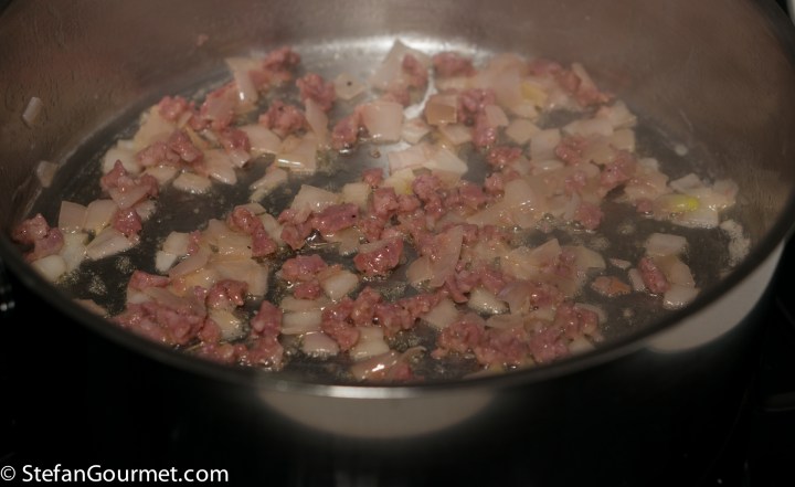 Buonissimo! Io quando lo faccio preferisco sfumarlo con il vino bianco, ma in ogni caso… eccezzionale… come mi manca la Luganega… peccato che se me la portassi qui in valigia (e la tentazione e’ Forte) mi arresterebbero 😂😂. Ciao Stefan!