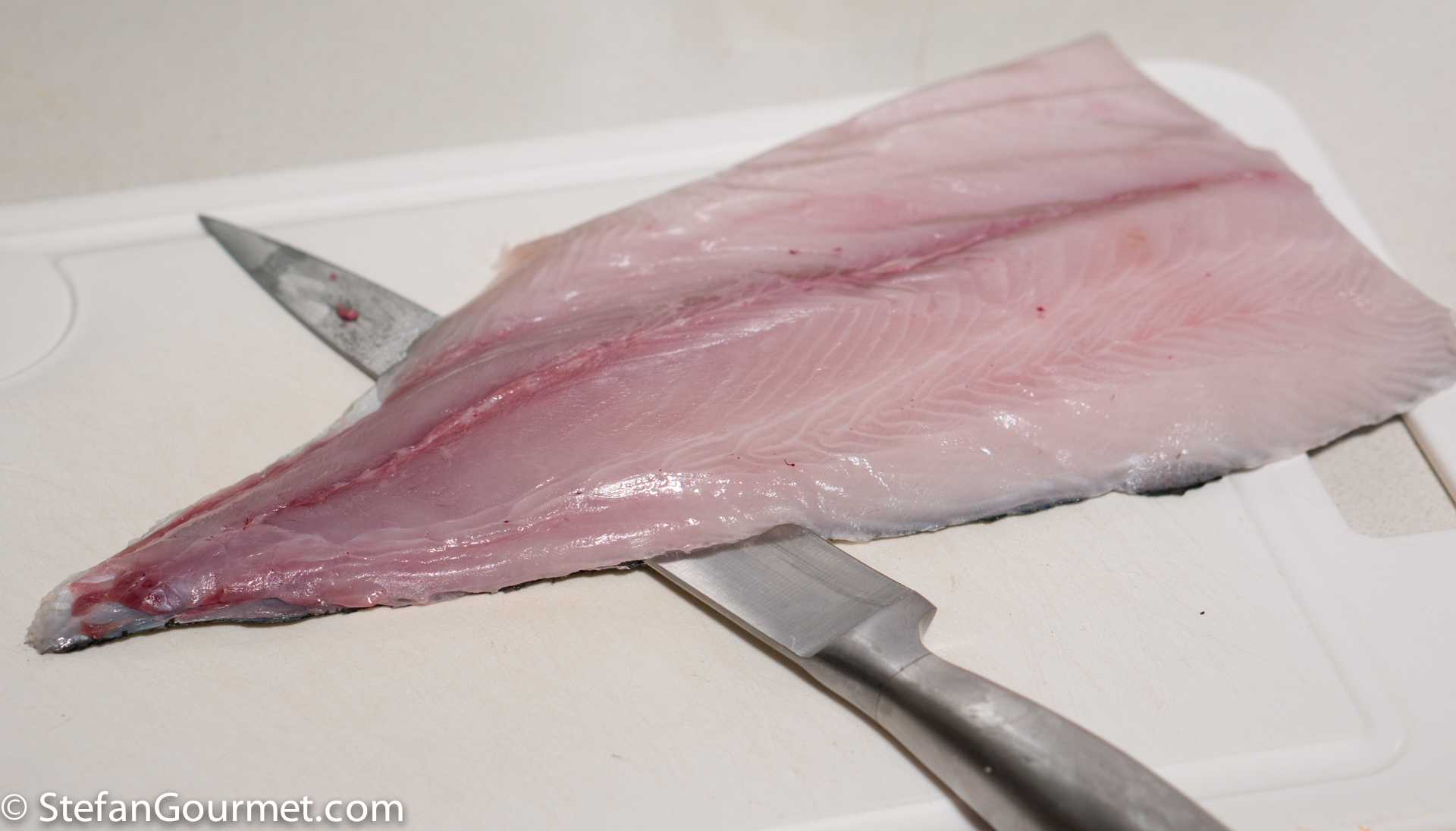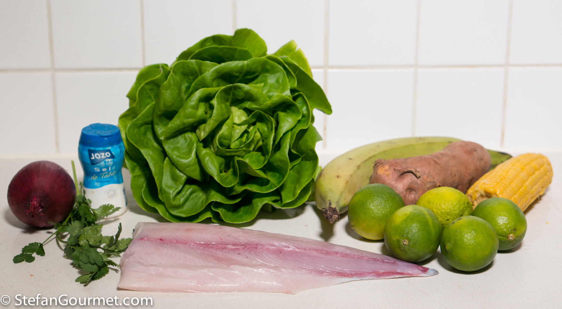 Usually when we go on vacation, I come back with a lot of ideas for new dishes to try. In fact, I still haven’t finished cooking and blogging all the ideas I had after our trip to the South of Italy last September. Our most recent vacation was to Costa Rica. It is a beautiful country, but you don’t go there for the food. Just for the fun of it I may still do a post about the national dish called Casado. The dish that I enjoyed most was in fact not from Costa Rica, but from Peru. Ceviche is often on the menu at restaurants in Costa Rica, and the version I really liked was Peruvian Ceviche. Ceviche is seafood that is raw and only ‘cooked’ briefly in lime juice. Peruvian Cevice is mixed with thinly sliced onions and is served with sides like patacones (fried plantain chips), corn, and sweet potato. From what I’ve been able to confirm using various online sources, the Peruvian Ceviche I had in Costa Rica seems to be pretty authentic. If there are any Peruvians out there reading this, please comment 🙂 You can make various types of fish for this, as long as it is suitable for eating raw. I used kingfish, also known as hamachi or yellowtail.