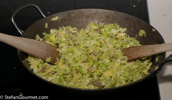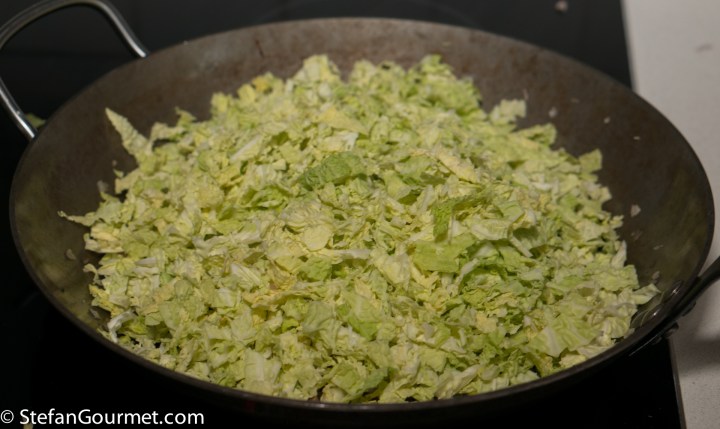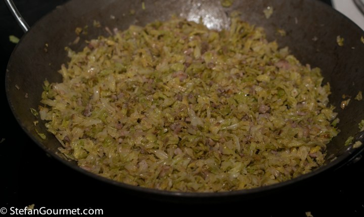 …which will take about 25 minutes. Stir regularly for even cooking. Allow the cabbage to cool somewhat.
