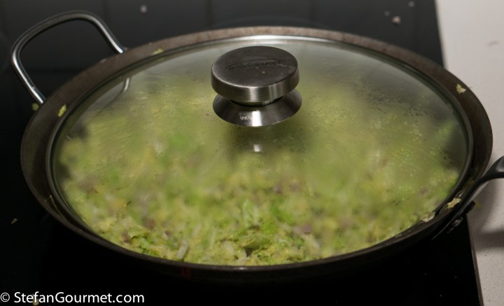 …and cover. Braise the cabbage over medium-low heat until it is tender but firm to the bite…