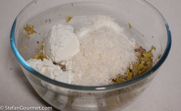 Combine the cabbage with ricotta and freshly grated parmigiano in a bowl.