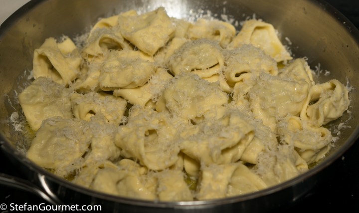 Toss to coat the tortelli with butter and parmigiano.