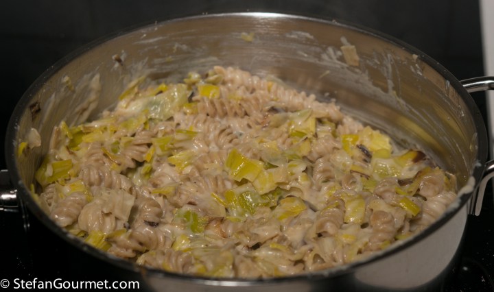 I am ‘potty’ about leeks – the first ‘green stuff’ always on my food order! And this indeed appeals: well, don’t oft make béchamel these days but will on occasion . . . and there definitely will be extra mozzarella, the use of which commits far fewer ‘food sins’ 🙂 ! Use fusilli often – yes, whole wheat !!