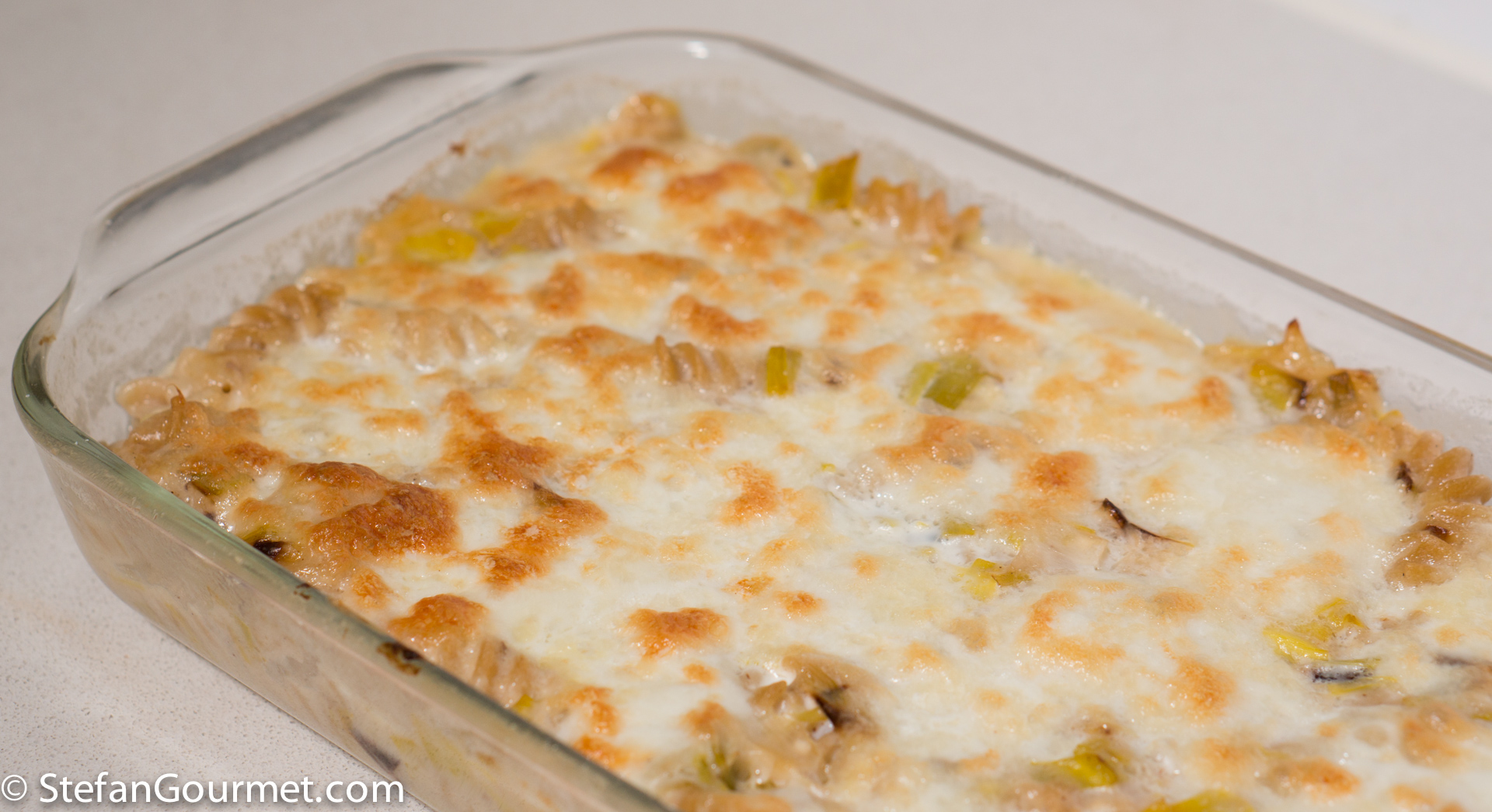 I am ‘potty’ about leeks – the first ‘green stuff’ always on my food order! And this indeed appeals: well, don’t oft make béchamel these days but will on occasion . . . and there definitely will be extra mozzarella, the use of which commits far fewer ‘food sins’ 🙂 ! Use fusilli often – yes, whole wheat !!