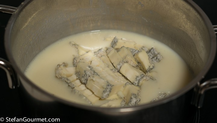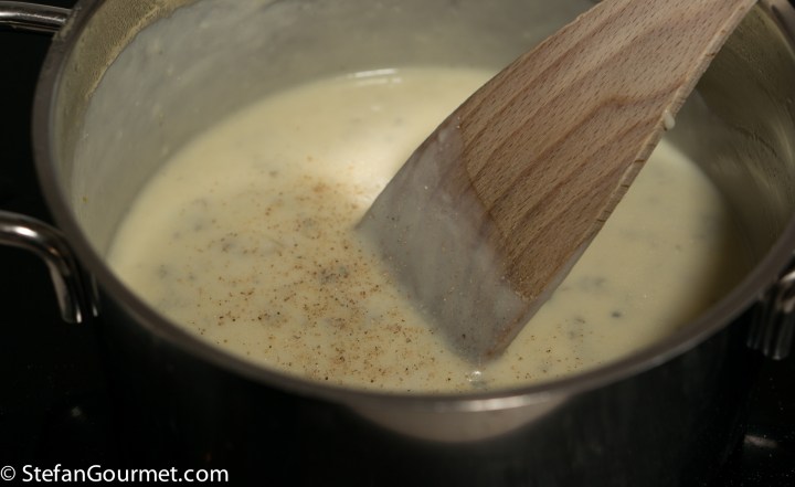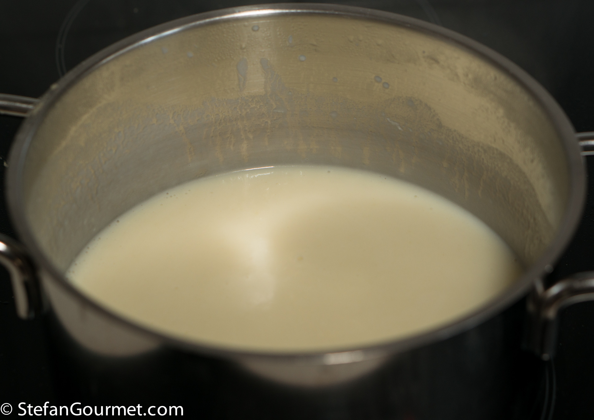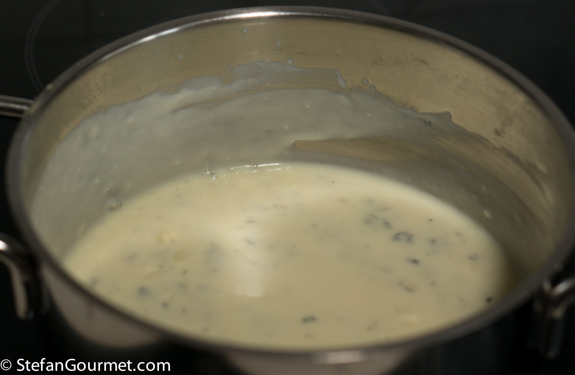 To make the goat cheese sauce, start by making a simple white sauce according to these instructions.