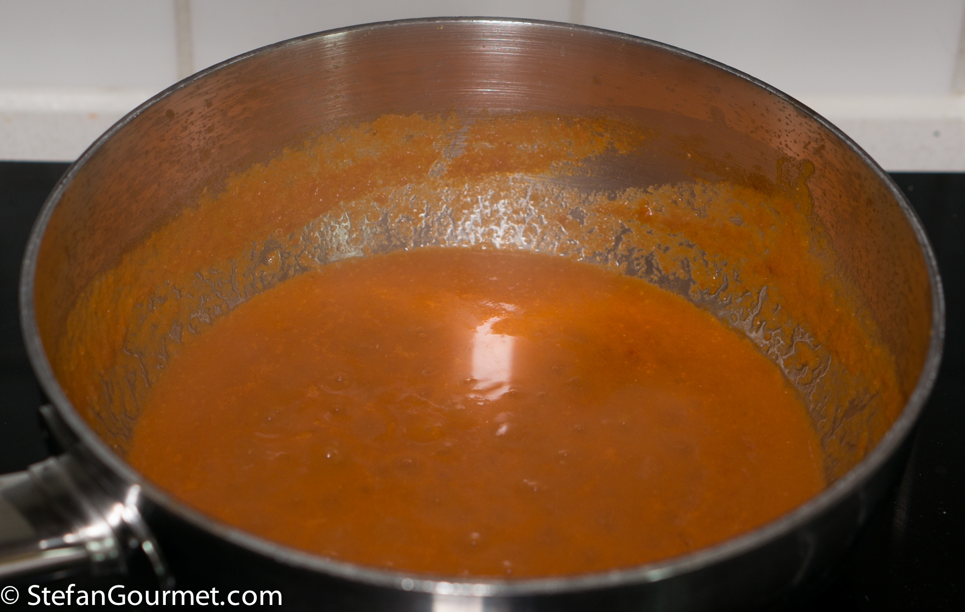 Blend until smooth and transfer that mixture to a saucepan. Bring it to a boil…