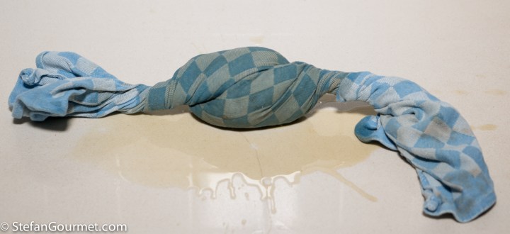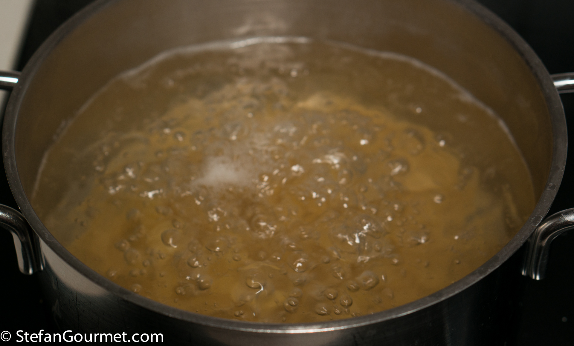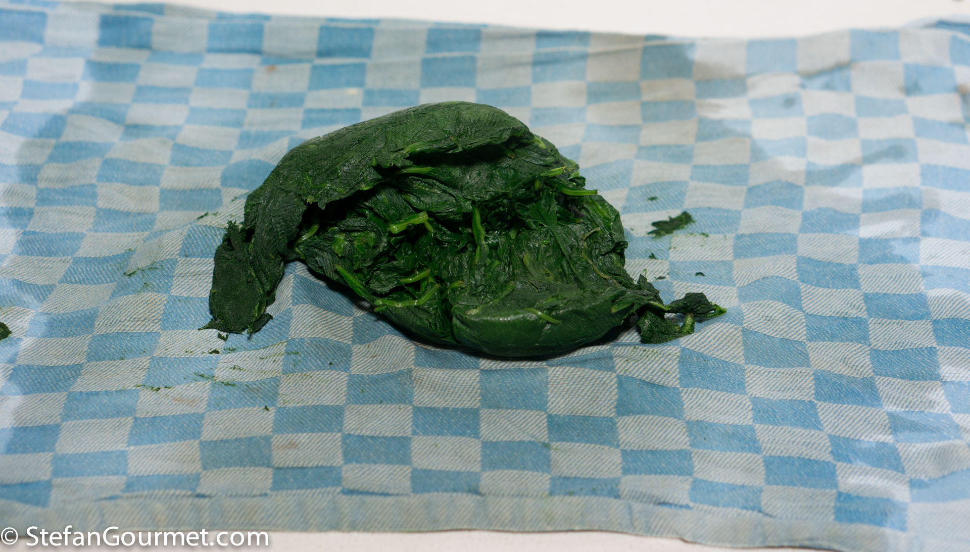 In the meantime, wash the spinach, and put it in a large pot (raw spinach requires a lot of space) with the water that still clings to the leaves from washing. (In Dutch we even have a word that is rarely used in another context: “aanhangend” water.)