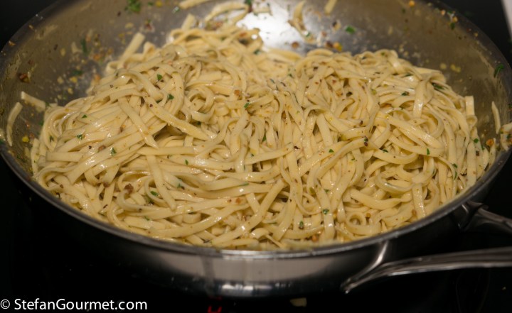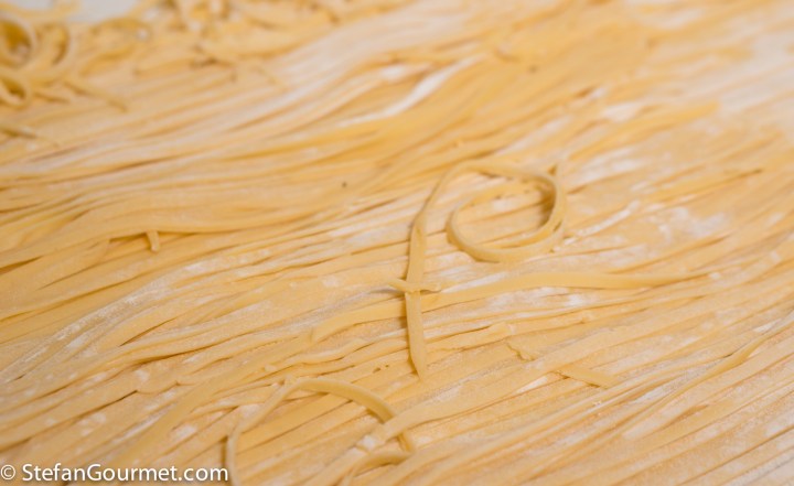 450 grams (1 lb) fresh egg tagliolini, made using 3 eggs and about 300 grams (2 cups) Italian 00 flour