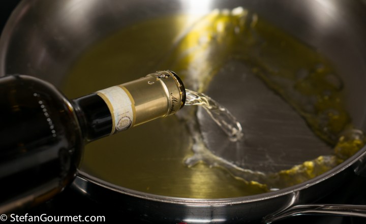 Now add 120 ml of white wine…