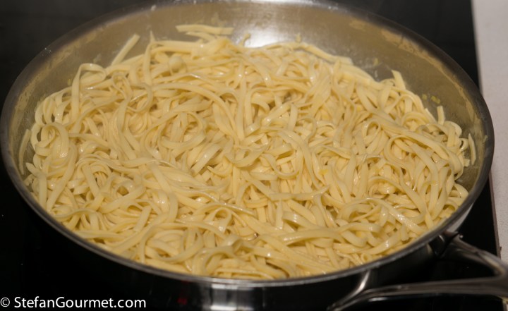 …add the drained pasta and stir to mix over high heat. Turn off the heat as soon as it starts to look dry.