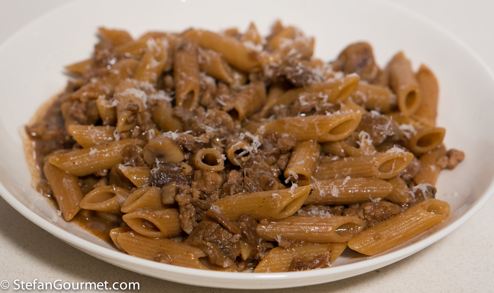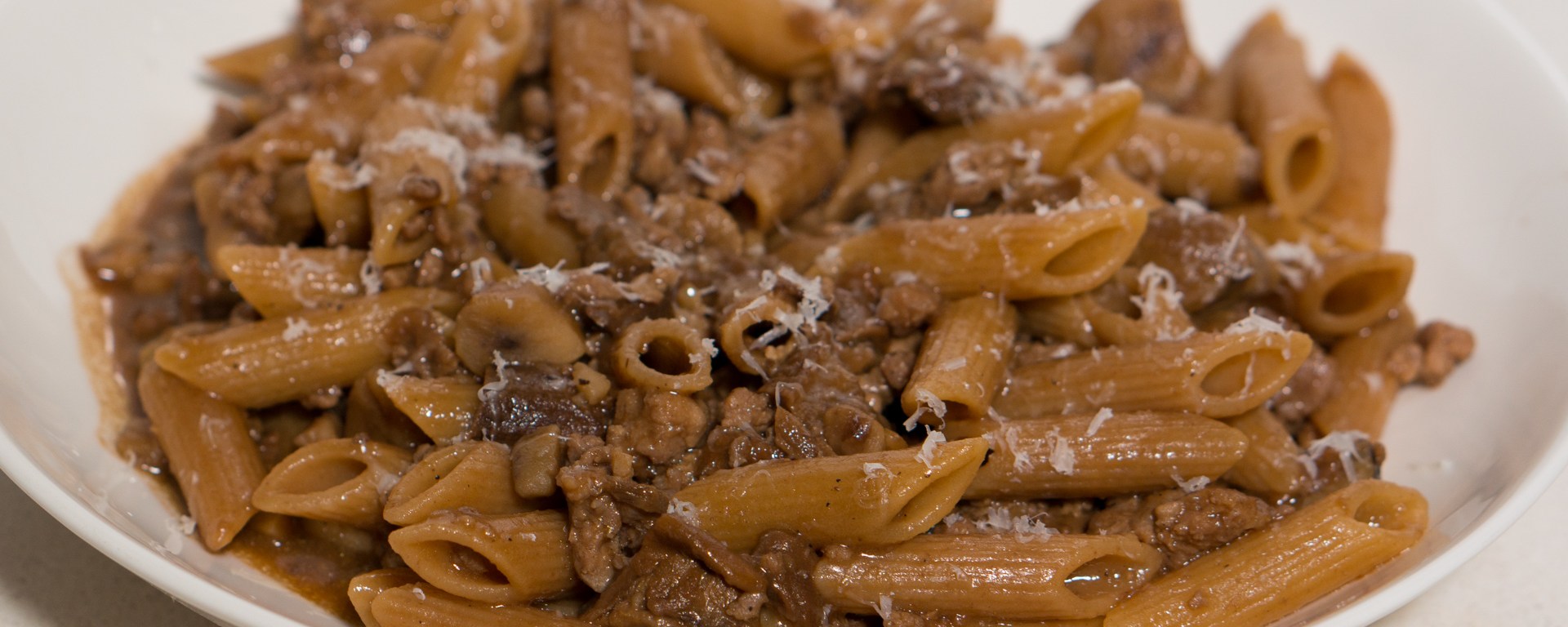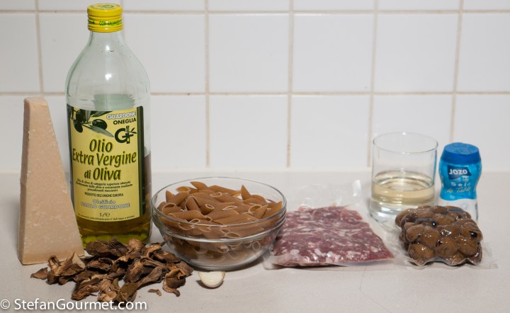 Sometimes I see an interesting ingredient at the market that is interesting mostly because I don’t use it often, and then I buy it and it ends up going past the expiry date because I don’t use it often. Sounds familiar? I had some already cooked chestnuts that were going down that path, and so it was a good thing that I saw a recipe for pasta with chestnuts and sausage on Paola’s blog Primo non sprecare. It is very appropriate to use one of Paola’s recipes to avoid throwing away food, because that is exactly the theme of her blog.