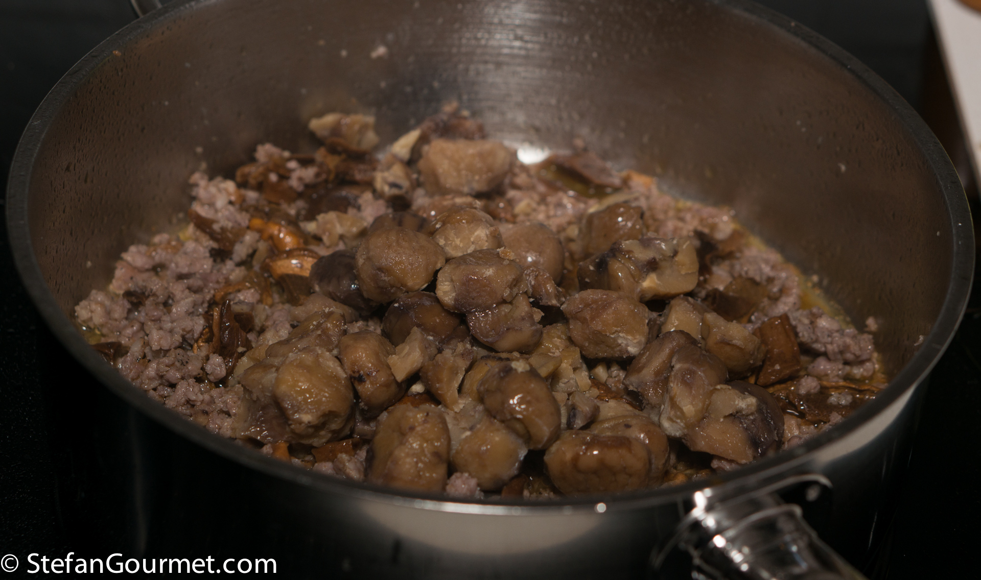 Add some of the chestnut soaking water.