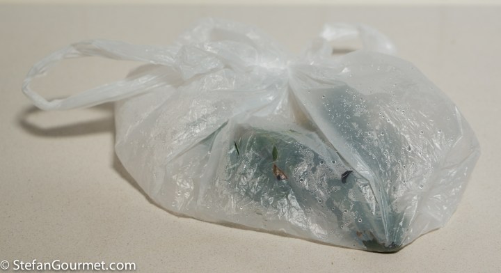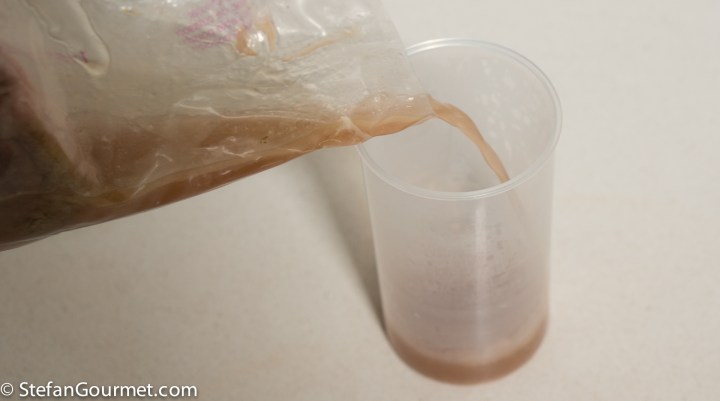 Pour the juices from the bag into a container.