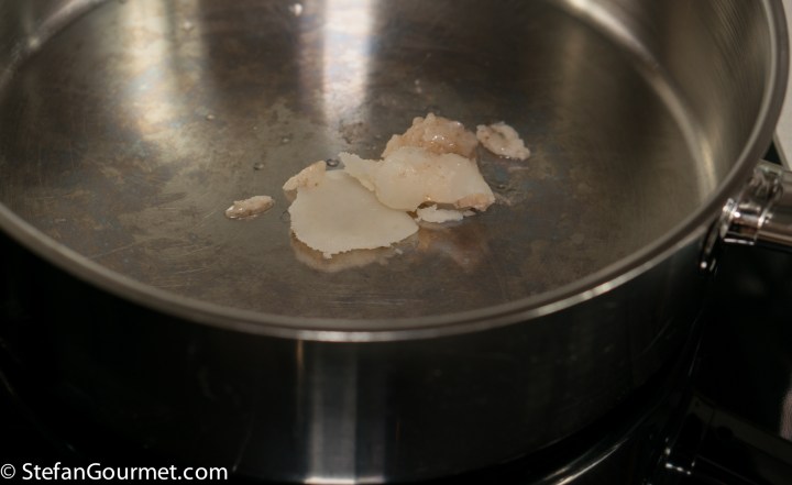 Melt the pork fat in a frying pan.