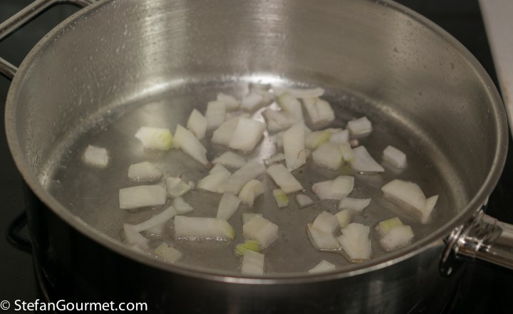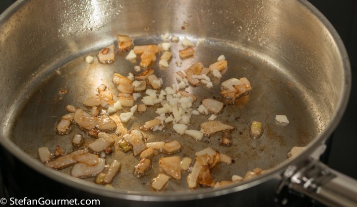 Stir over medium heat until the onion is soft and golden, then add the garlic.