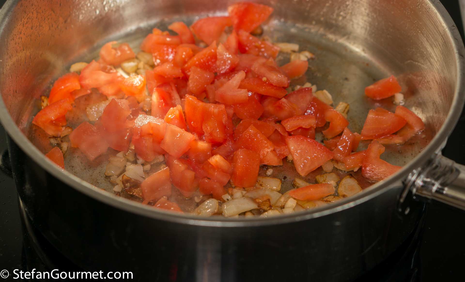 Stir briefly, then add the tomato…