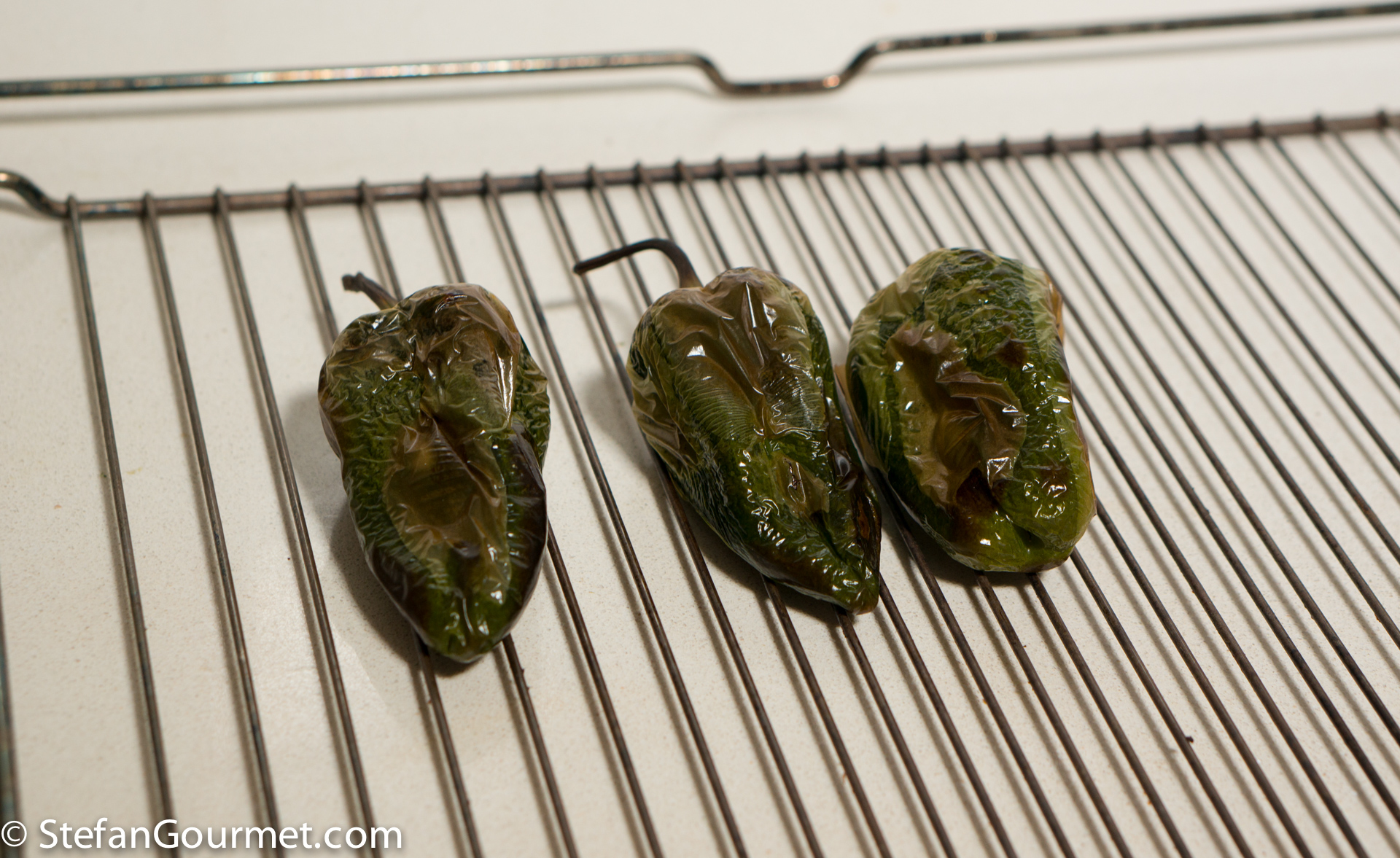 Put the poblanos directly under a preheated broiler for 3 minutes per side.