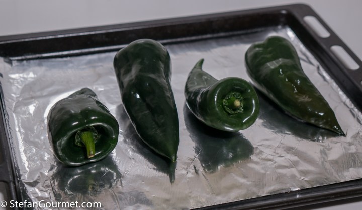 When roasting peppers to stuff them, the balance is between roasting them long enough so that you can easily remove the skin, but short enough so they don’t become too soft.