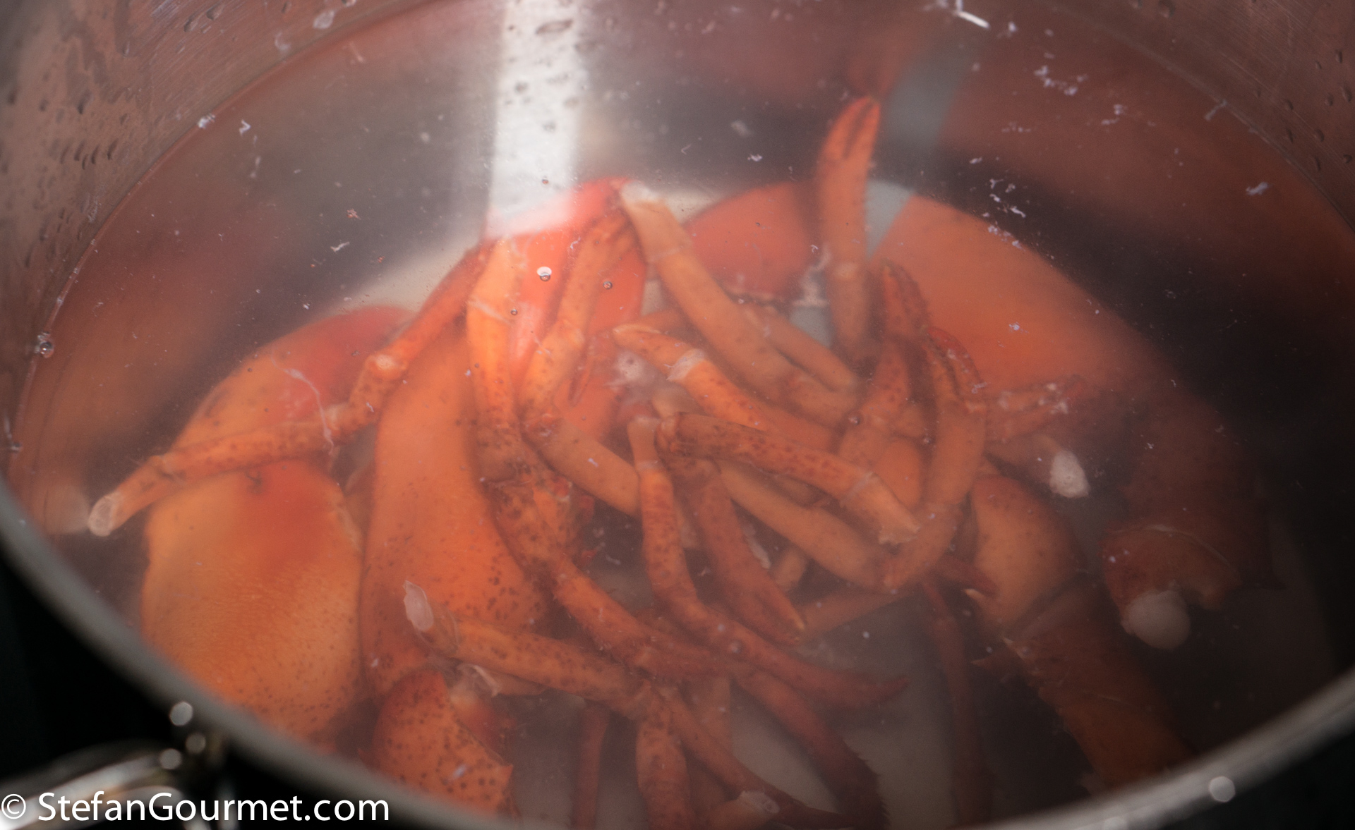 Remove the claws and legs and return them to the hot water to steep for another 6 minutes to finish cooking.