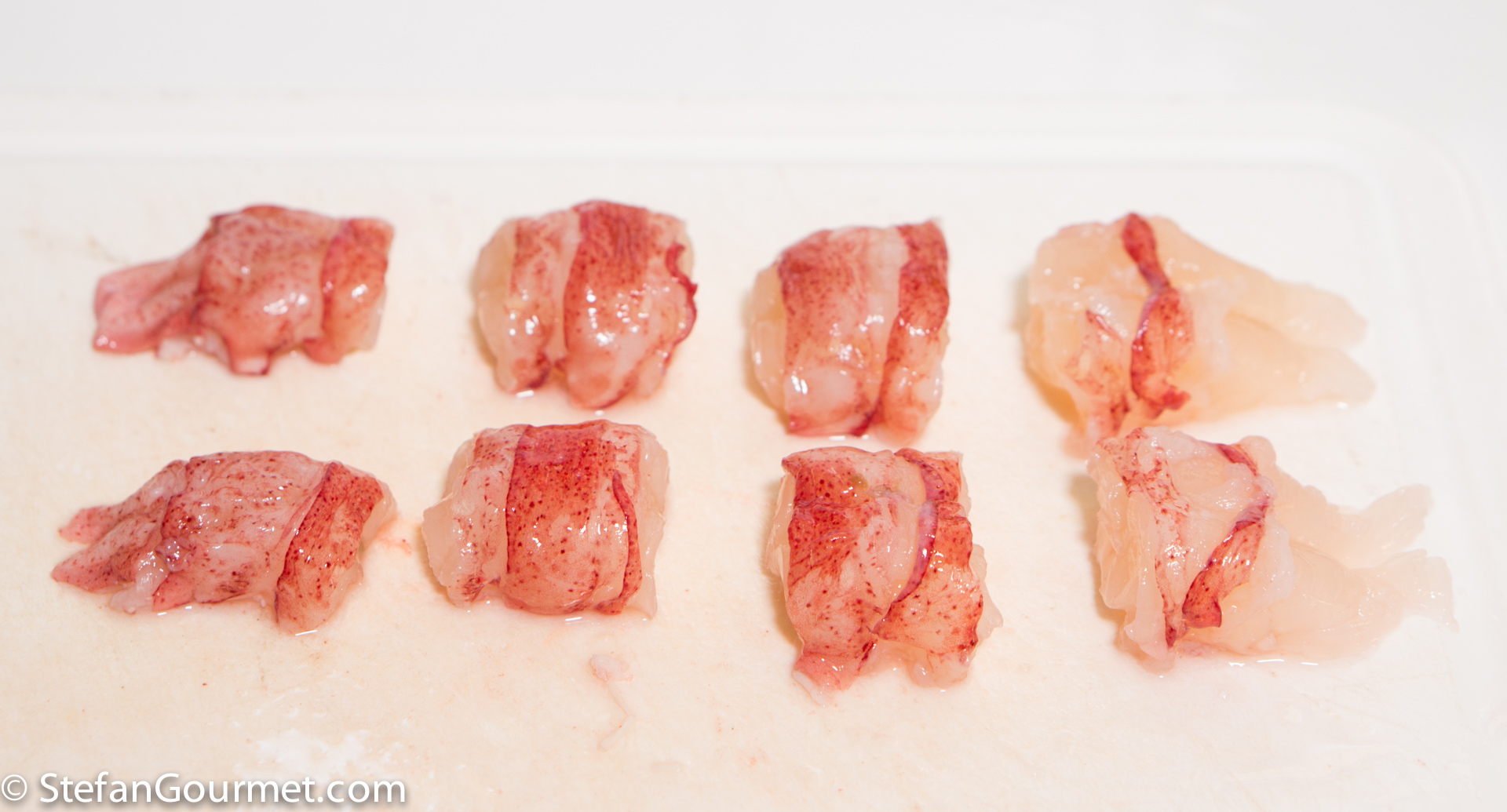 To cook the lobster tail sous-vide, dispatch the lobsters using your preferred method and allow them to steep in hot water (just off the boil) for 1 minute only.