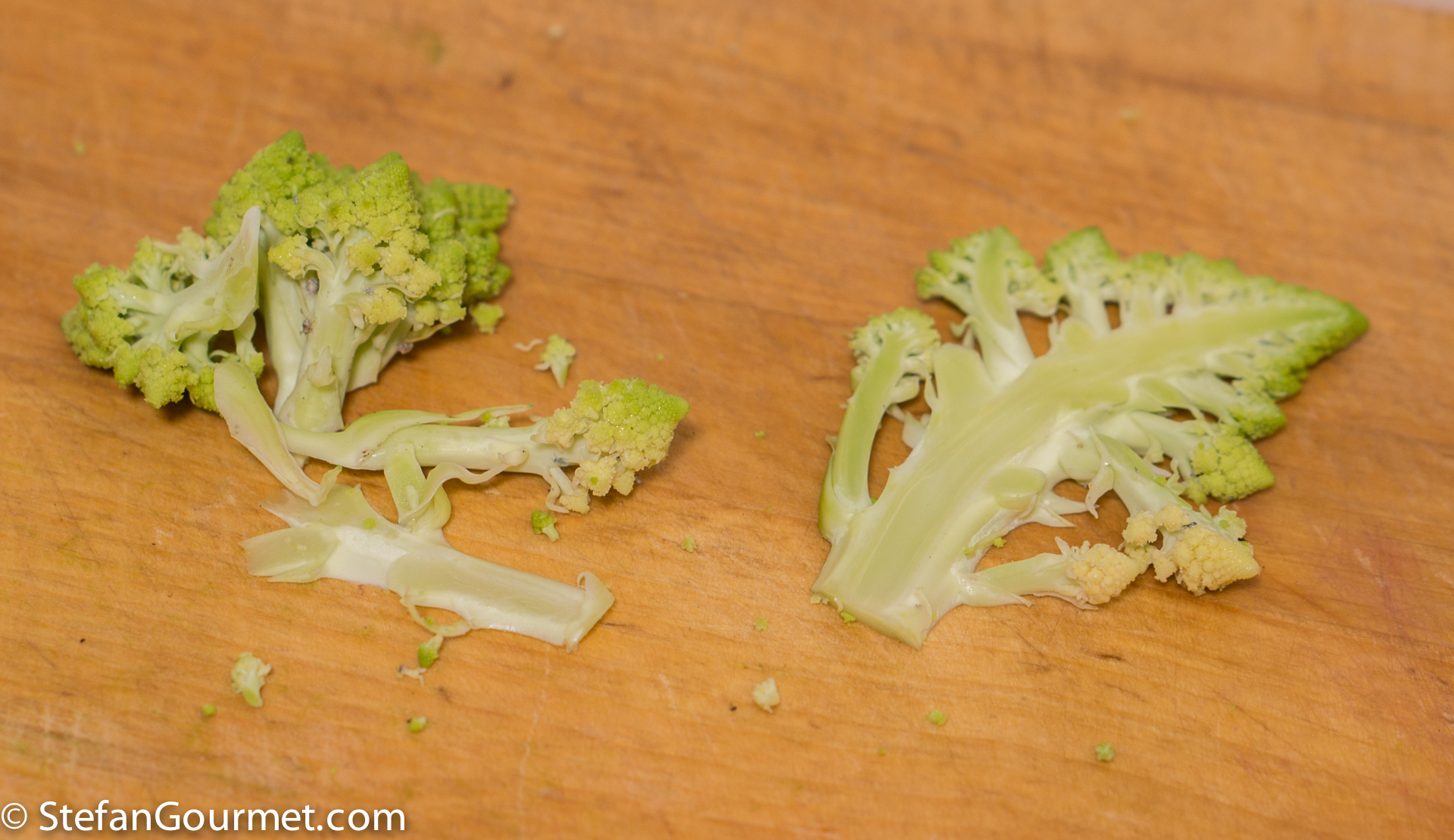 Trim away the trunk. Discard the trunk but keep the remaining romanesco for the mousse.