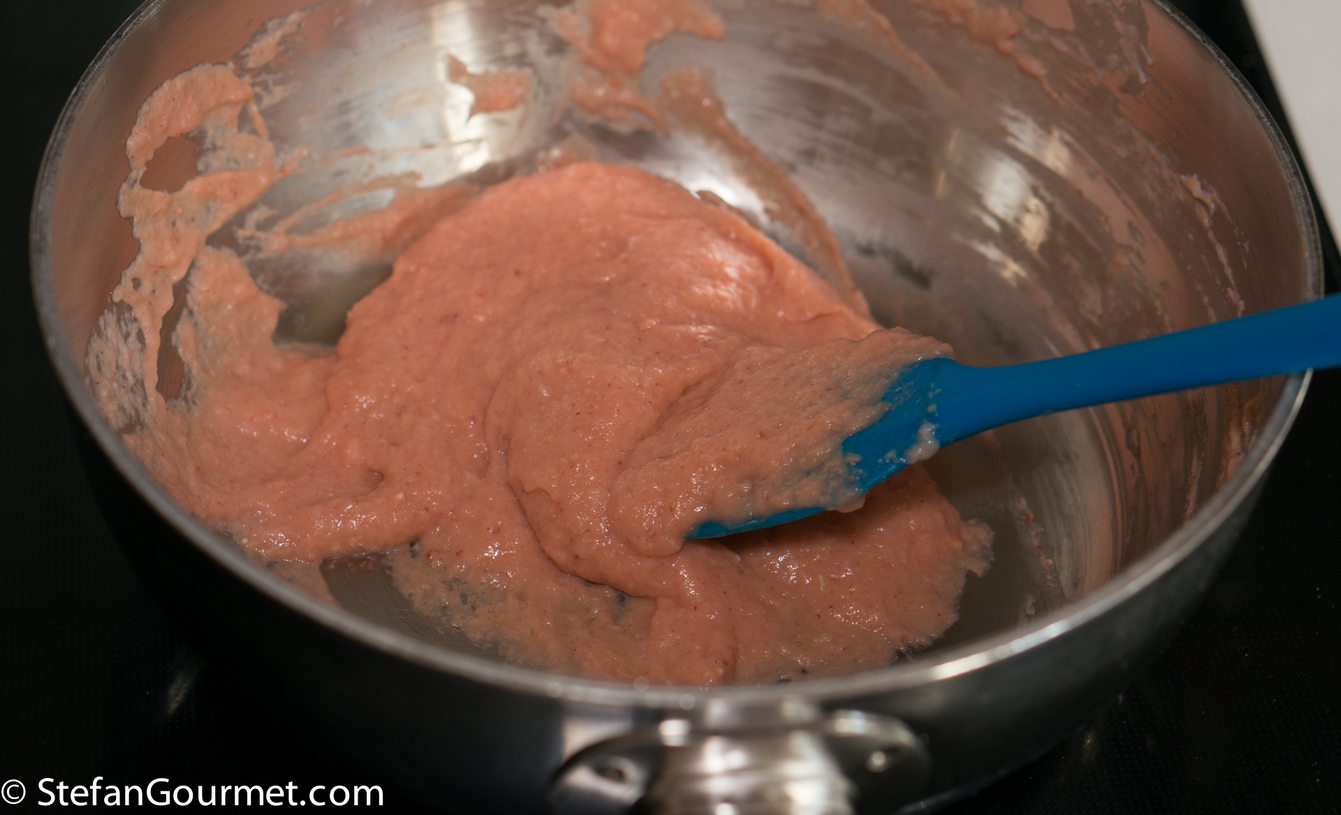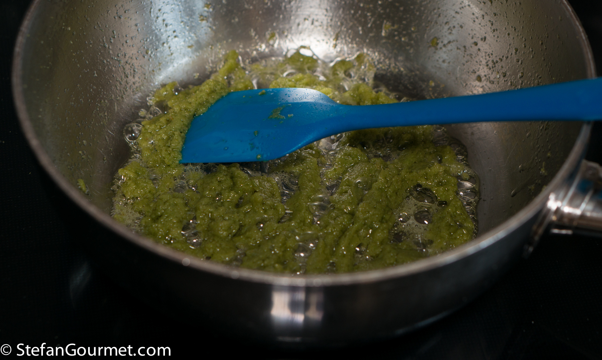 Blend the romanesco and curry paste with the cream until very smooth. If you don’t have a strong blender like a Vitamix, you could use a foodmill to make the romanesco mousse more smooth, or push it through a sieve. Taste and add salt or more curry paste as needed (cook the curry paste in oil as before).