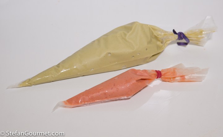 Putting both types of mousse in piping bags makes it easier to plate the dish.