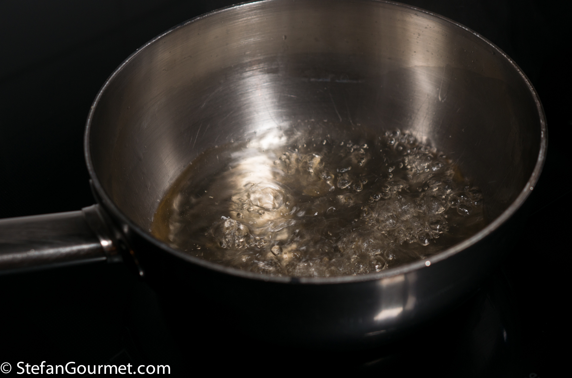 Increase the heat and stir over medium heat until the sugar has dissolved.