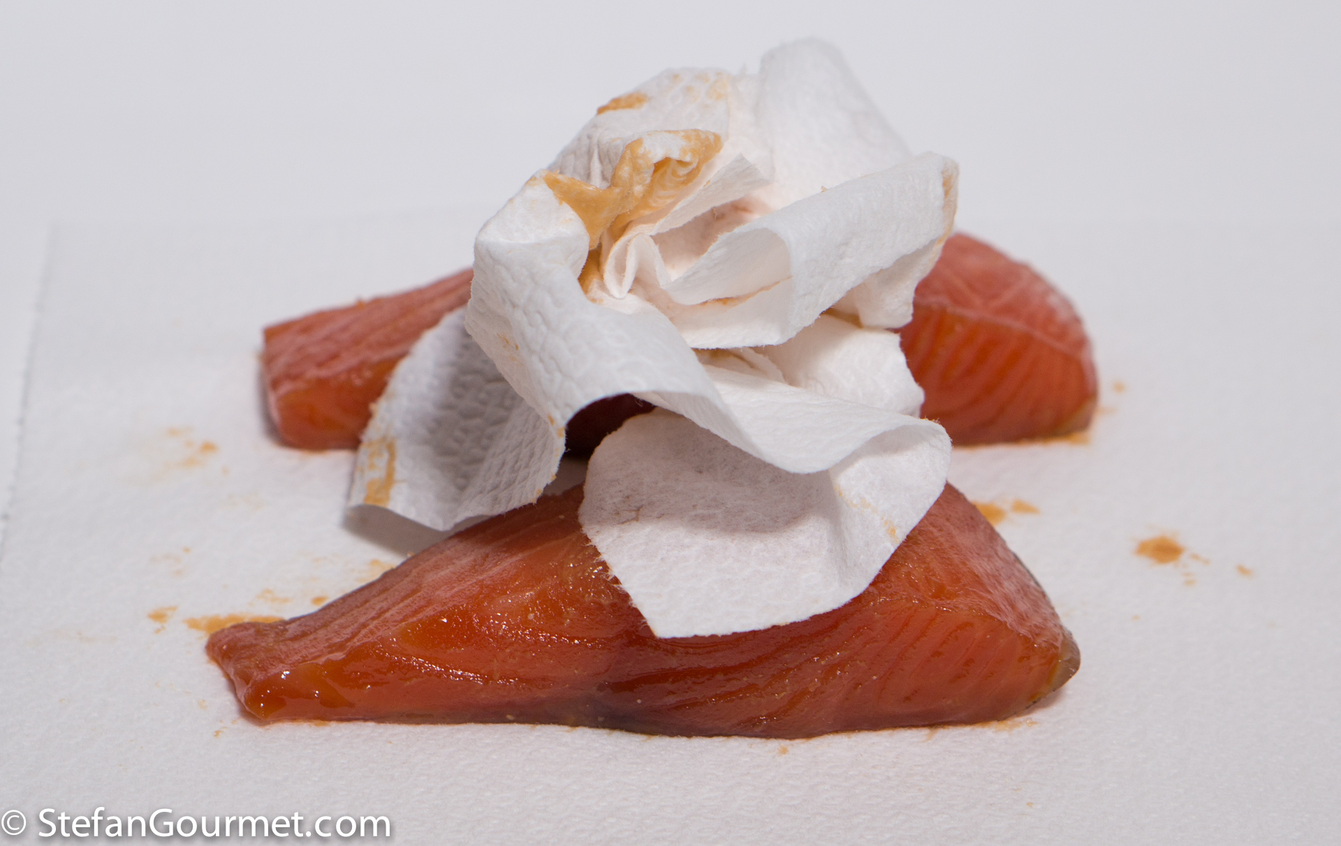 Use a ziploc bag and the water displacement method or a chamber vacuum sealer to vacuum seal the salmon with the miso mixture. Refrigerate and allow to cure for 2-3 days in the refrigerator.