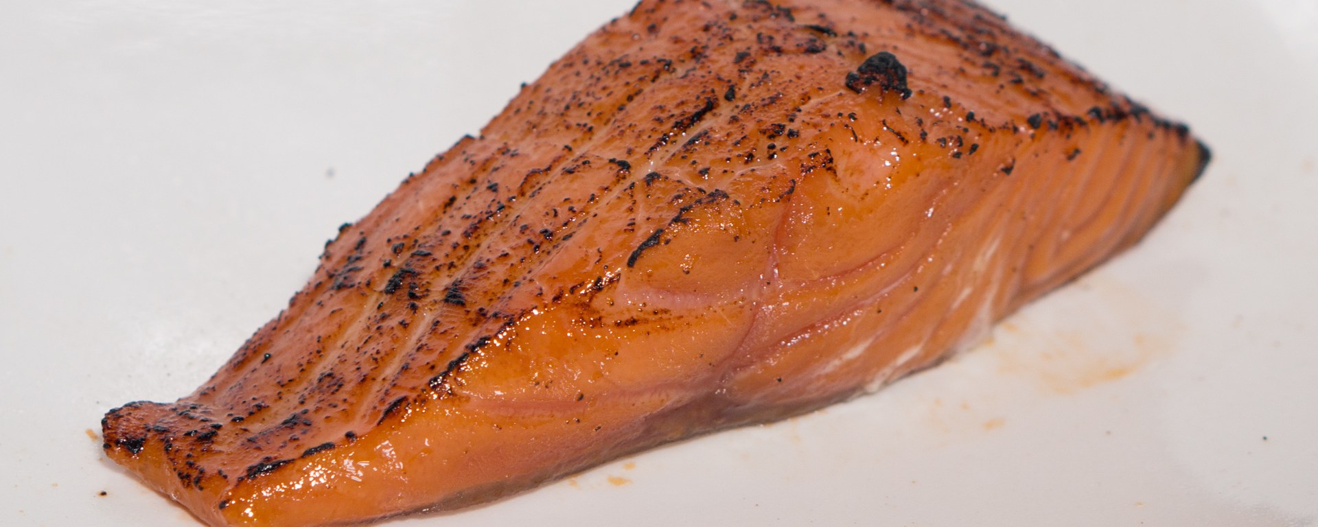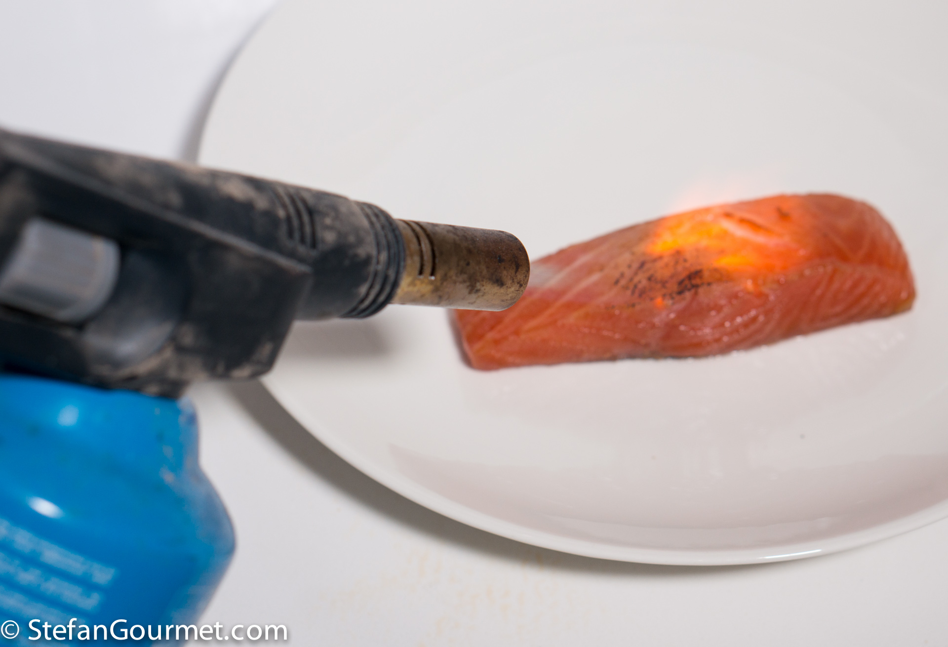 Use a blow torch to slightly char the salmon and increase the serving temperature.