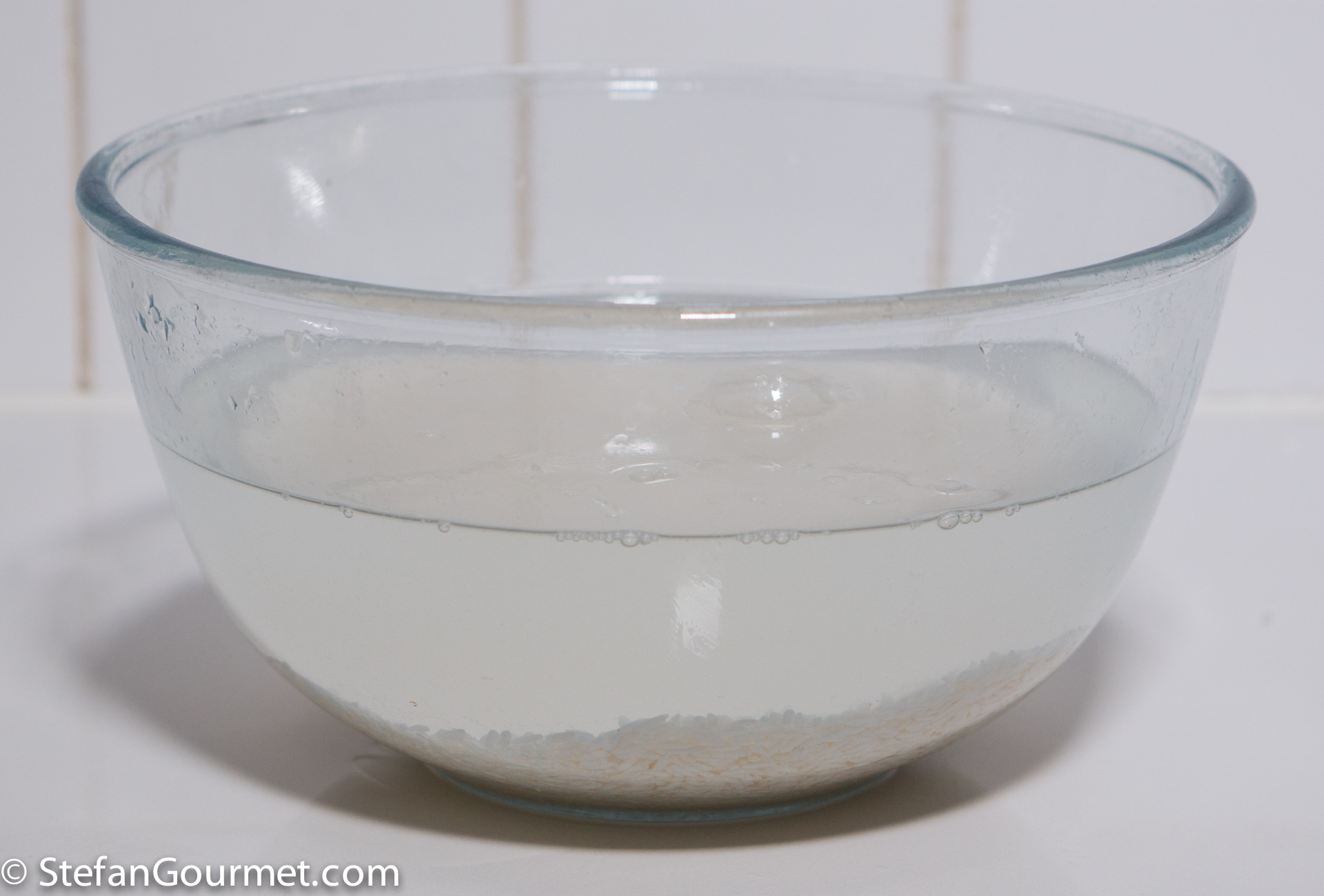 Cover the rice with ample water and allow to soak for at least 4 hours or overnight.
