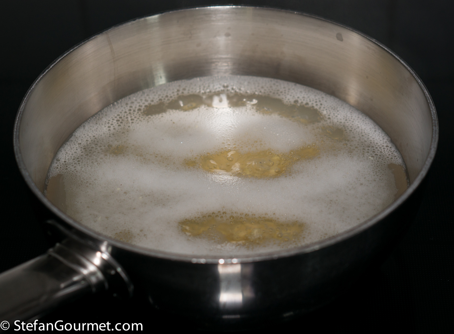 Stir this over medium heat until the sugar has dissolved and keep warm.